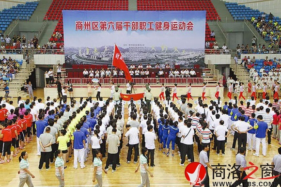7月19日,商州區第六屆干部職工健身運動會在市體育館開幕。本次運動會共有50個代表團,3148名運動員,將參加籃球、乒乓球、羽毛球、廣播體操、拔河、趣味六大項比賽。(記者 楊鑫 攝)