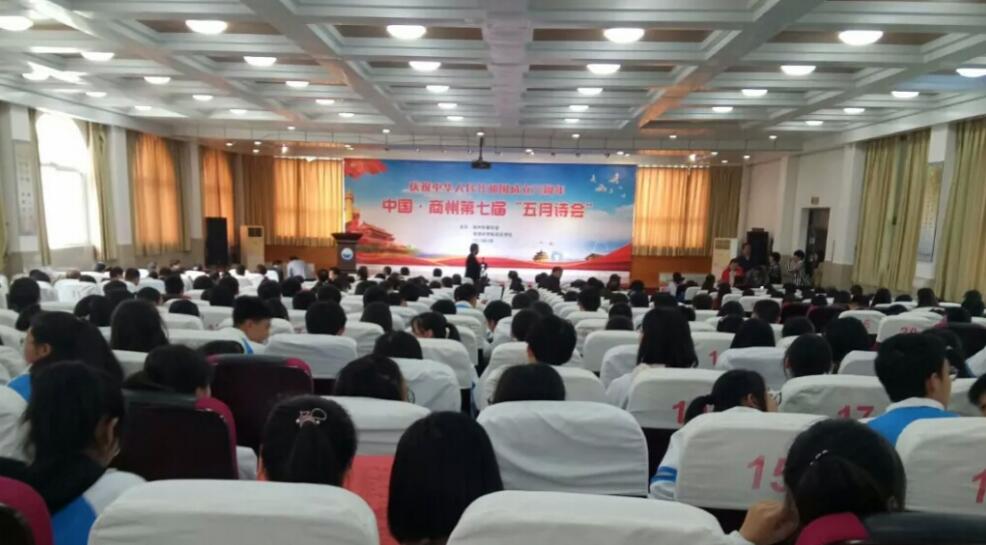 5月11日,由商州作家協(xié)會(huì)和商洛市中學(xué)陽光文學(xué)社聯(lián)合舉辦的慶祝中國人民共和國成立70周年“中國.商州第七屆五月詩會(huì)"在商洛市中學(xué)隆重舉行。著名作家、《小說月報(bào)》執(zhí)行副主編劉潔,商洛市文聯(lián)副主席、商洛市作協(xié)主席魚在洋等到會(huì)指導(dǎo),市直單位作家詩人、商州、洛南、丹鳳、山陽作協(xié)部分會(huì)員以及商洛學(xué)院、商洛市中學(xué)師生500余人參加詩會(huì)。
