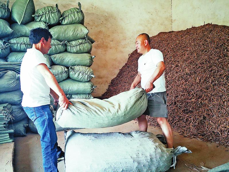 2014年8月,代建輝拿出多年積蓄,又從銀行貸款30萬元,開始收購村上的中藥材。后來,他外出前往多個制藥廠聯系銷售。到2015年6月,代建輝先后收購了300多噸中藥材,也聯系到了藥廠收購中藥材。這更加堅定了代建輝的信心和決心。此后每年,代建輝都先出錢買來種子交給村民種植,待藥材成熟后村民就把藥材賣給他。如果有其他收購商給的價錢高,村民也可自愿出售,只需付給代建輝種子錢就行。