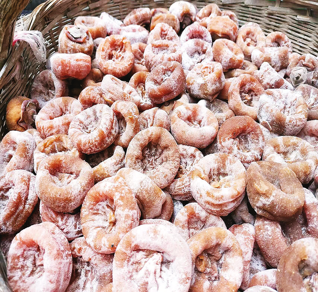 后來,隨著時代的發展,孝義的年輕人紛紛外出務工,深秋時節漫山遍野宛如紅燈籠般的柿子無人采摘,最終爛在樹上,或掉落在山野荒地,令人惋惜不已。2020年前后,當地政府為了重塑孝義柿餅的品牌,出臺一系列舉措鼓勵群眾利用當地資源生產加工柿子產品,將其作為特色產業做大做強。
