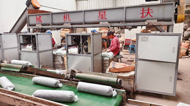 眼下正值香菇種植的重要關頭,楊斜鎮陜西千牛土地開發有限公司食用菌產業基地內機械轟鳴,培養料堆旁,工人迅速將料鏟入裝袋機進料口,生產線上,工人們熟練地給香菇菌棒裝袋,現場忙碌而有序。