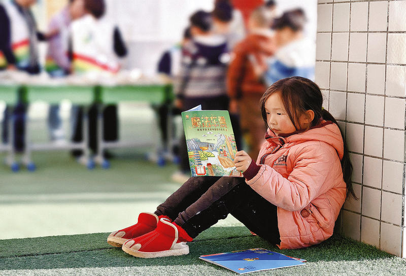 《詩詞歌賦少年游》《漢字故事》《課堂作文》……在書桌拼成的臨時借閱點,各式圖書如同一把把神奇的鑰匙,開啟了孩子們的求知之門,讓他們在書的海洋里盡情遨游。“這本《捂著門牙學歷史》,我只翻看了一眼,就喜歡上了。我已經讀完了隋唐宋時期的故事,這次還要再讀一讀其他歷史時期的故事。”樊川小學五年級學生陳靜怡說。她告訴記者,《捂著門牙學歷史》這套圖書里面的故事幽默有趣,自己十分喜歡,在之前的閱讀中,她已經了解了創立科舉制的楊堅、楊廣,開啟貞觀之治的李世民,一代女皇武則天,勇猛的門神秦瓊和尉遲恭等歷史人物,在歡笑中學習到了歷史知識。