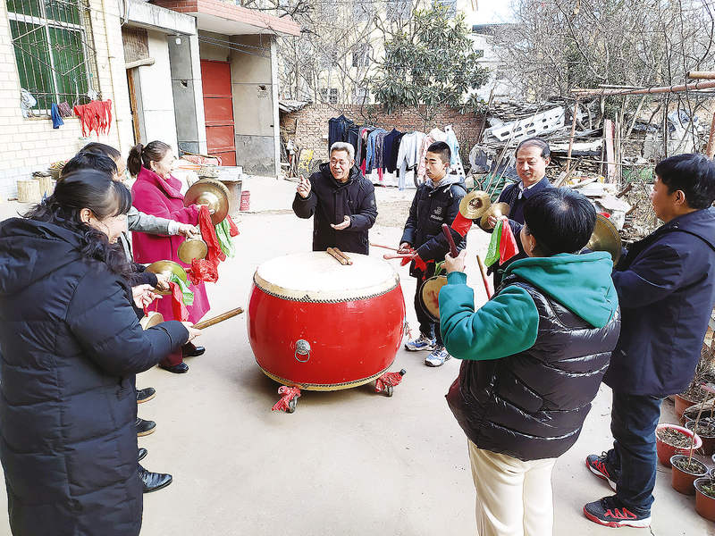 “紫荊鼓樂(lè)雖是地方民間音樂(lè),卻深受當(dāng)?shù)乩习傩障矏?ài)。逢年過(guò)節(jié)或是群眾祝壽的喜慶時(shí)刻,一通咚咚作響的鑼鼓聲響起,村里男女老少聞聲趕來(lái)湊熱鬧,聽(tīng)一聽(tīng)這鼓樂(lè),大家就會(huì)心情舒暢。”2月13日,郭錄勛滿臉笑意地說(shuō),他自幼便對(duì)鼓樂(lè)情有獨(dú)鐘,從爺爺手中接過(guò)鼓槌后,不知不覺(jué)已敲了50多年。