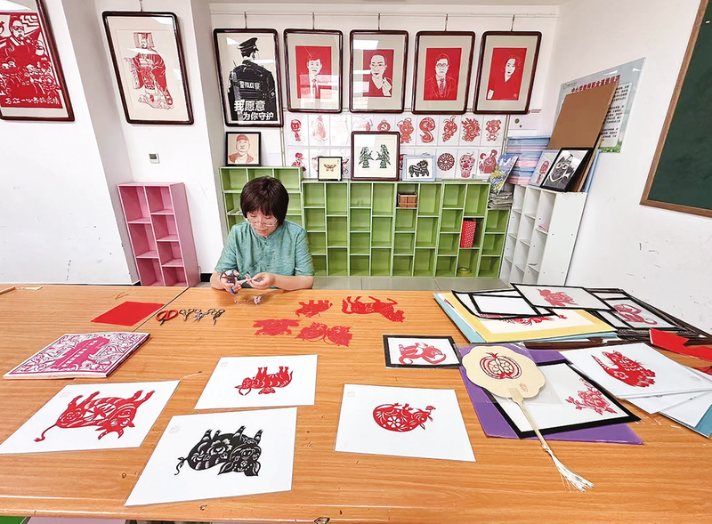 王利娜坐下來,取出一張紅紙、一把剪刀,手指翻飛間,一幅栩栩如生的剪紙作品便躍然眼前。“這是石榴花。”她輕盈地用手指翻動著剛剛剪好的作品。在她面前的工具盒里,放著五把大小不同、形狀各異的剪刀,有的用來剪大致形狀,有的精雕細節。她眼鏡下的大眼睛里充盈著笑意說:“這都是我自己打磨的,還有四五把自己打磨的刻刀,也是精雕細節的?!?br> 作為市級非物質文化遺產項目,商州剪紙以其獨特的藝術魅力和深厚的文化底蘊,正吸引著越來越多人的關注與喜愛。