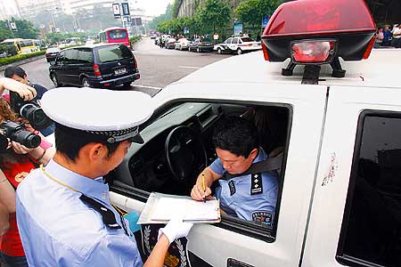 本網(wǎng)訊(方鳴 建民) 今年以來,山陽警方始終把警車專項治理作為和諧警民關系、維護群眾利益、公正廉潔執(zhí)法、塑造公安形象的民心工程、形象工程,本著有什么問題解決什么問題,什么問題突出就重點解決什么問題的原則,針對警車隨意亂停亂放、轉(zhuǎn)借轉(zhuǎn)賣和變造偽造、挪用套用牌證、酒后駕車、警車私用、不守交規(guī)、亂鳴警笛警報等違紀違規(guī)問題,采取四條警規(guī),強力開展警車專項治理,一抓到底,抓出成效,毫不松懈,絕不手軟,受到良好地社會效果。