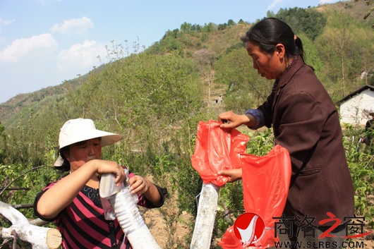 兩位當地女土專家正在腹膜套袋