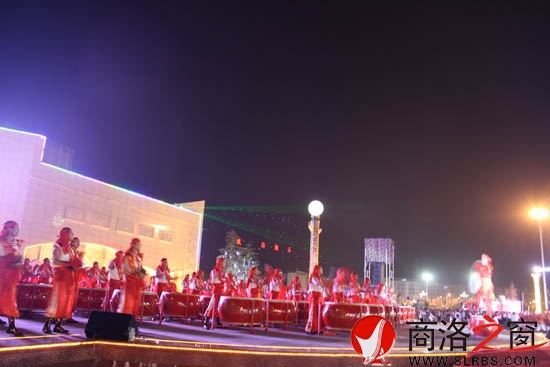 本網訊 6月16日晚,商南縣文化廣場人聲鼎沸,熱鬧非凡。千人威風鑼鼓、秧歌舞大型演出《威風商南、勁舞鹿城》首次在公眾面前亮相,鼓聲擂擂,歌舞飛揚,全省200余名新聞工作者、部分省市領導及商南鹿城萬余市民觀看了這場精彩紛呈的演出。
