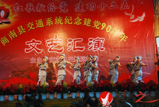 本網訊(周銀祥 劉芳) 近日,商南縣交通運輸局舉辦了交通系統慶祝建黨90周年文藝晚會。高速辦、監測站、公路管理局,農村道路管理局、恒豐運輸公司、路橋公司、航運站、運管所等9個單位,表演了歌伴舞《映山紅》、《紅梅贊》,小品《交通人》,大合唱《我為偉大的祖國站崗》、《唱支山歌給黨聽》等13個節目。精彩的表演凝聚和展示了商南交通人的藝術才華和集體智慧,促進了商南交通人在黨旗的感召下創先爭優謀發展,奮發進取比干勁,立足崗位比作為的信心和決心。