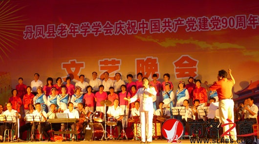 本網訊 日前,丹鳳縣老年學會在縣中心廣場舉辦紀念建黨90周年文藝晚會,縣離退休職工藝術團、愛樂合唱團、夕陽紅藝術團等民間藝術團體進行了精彩演出,這些老年朋友們用美好歌聲慶祝黨的90華誕。(李紅/攝)