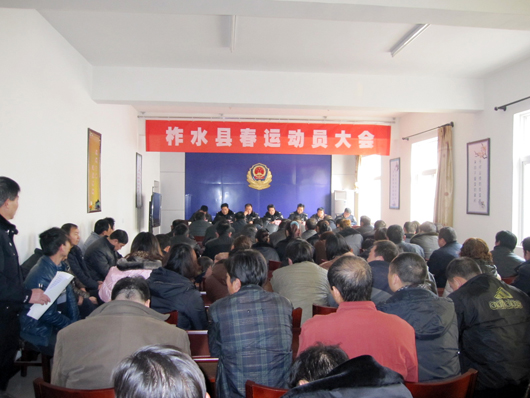 會議由柞水大隊副大隊長陳定院主持。會上宣布了《柞水縣公安局交通管理大隊2012年"春運"道路交通安全管理實施方案》,通報了近期全國幾起重特大道路交通事故情況。大隊長劉興海及交通局副局長蘇平貴就春運道路交通安全管理、運營工作作了詳細安排并提出了具體要求,會上客運、出租公司負責人作了表態發言,市交警支隊郭建民副支隊長針對柞水"春運"工作做了三點指示,郭支隊長要求:一要高度重視春運工作,"春運"工作對于維護社會經濟發展和社會秩序穩定的大局具有重要意義;二要將春運安全責任落實到位,加強安全防范,強化監督檢查;三是交警部門要嚴查重處交通違法行為,務必把各類安全隱患消滅在萌芽之中。