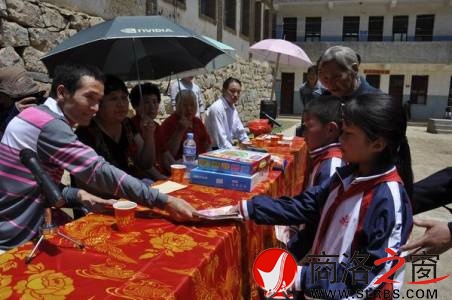 靈龍鎮三義小學有著悠久的辦學歷史。它成立于1956年,學校地處鎮柞兩縣市的交界處,條件艱苦,許多孩子上學路途遙遠,現代化教育水平較低。“5.12”地震中,原有校舍損毀嚴重。現有教學班7個,學生110多人,教職員工11人,學校貧困學生人數將近一半,有許多同學都又面臨輟學。該校三年級學生劉彬,郝川聰明好學,團結同學,尊敬師長,熱愛勞動,關心集體,學習成績非常優異。然而,家境特別貧困,需要社會的愛心幫助,當殘疾人馬華得知后,通過愛心家園網絡發起愛心求助,很快贏得了社會各界的廣泛參與。捐贈儀式上,靈龍鎮有關領導致歡迎辭。愛心大使馬華先生講話,三義小學負責人致謝,鎮安愛心團隊、西安老年合唱團成員代表紛紛發言,受捐學生三年級劉冰代表發言說;不忘感恩之心,努力學習,力爭以優異的成績來報答愛心人士的善舉,從小樹立樂于奉獻、學會感恩的高尚品德?;顒又性撔W生首先表演了精彩的舞蹈、相聲等文藝節目,并和西安老年錦繡合唱團的愛心人士同臺歌唱了《我們是共產主義接班人》、《黨啊,我想對你說》、《感恩的心》、《歌聲與微笑》、《我的幸福你知道嗎》、聽媽媽講那過去的事》等歌曲。