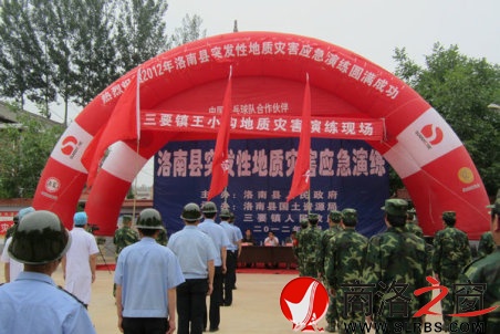 本網訊 (陳亞民 冀志奇)近日,洛南縣在三要鎮召開了全縣地質災害知識、防災知識培訓會,并進行了地質災害應急演練。市縣相關單位及19個鎮的政府領導、國土所所長、地質災害監測員共計300余人參加了活動。圖為培訓會及三要鎮王小溝滑坡點地質災害應急演練現場。