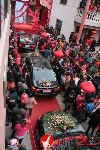 兄弟三人的“集體婚禮”在柞水縣城引起了轟動,距婚禮開始還有一個多小時,現(xiàn)場就聚集了幾百名前來祝賀的親友和好奇的居民,隔壁的居民也都趴在窗戶上,等待見證這場柞水縣城史無前例的婚禮。婚車經(jīng)過的沿途也都聚集了很多群眾,他們告訴記者,這么大的喜事誰都想親眼看看,跟著沾沾喜氣,這樣的婚禮看著比來了明星還要激動。