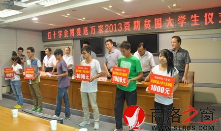商洛日報訊(冀希亮)8月30日,洛南縣紅十字會開展“博愛送萬家2013資助貧困大學生”活動,為63位貧困大學新生每人發放1000元助學金。(冀希亮 攝)