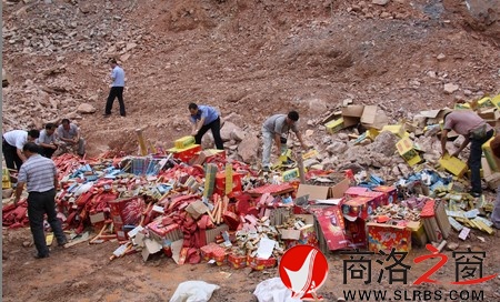 商洛日報訊(邢光銀)八月二十八日,鎮安縣公安局將二O一二年以來收繳的三百二十余件假冒偽劣煙花爆竹在永樂鎮一山溝內集中銷毀,及時消除了安全隱患。圖為銷毀現場。