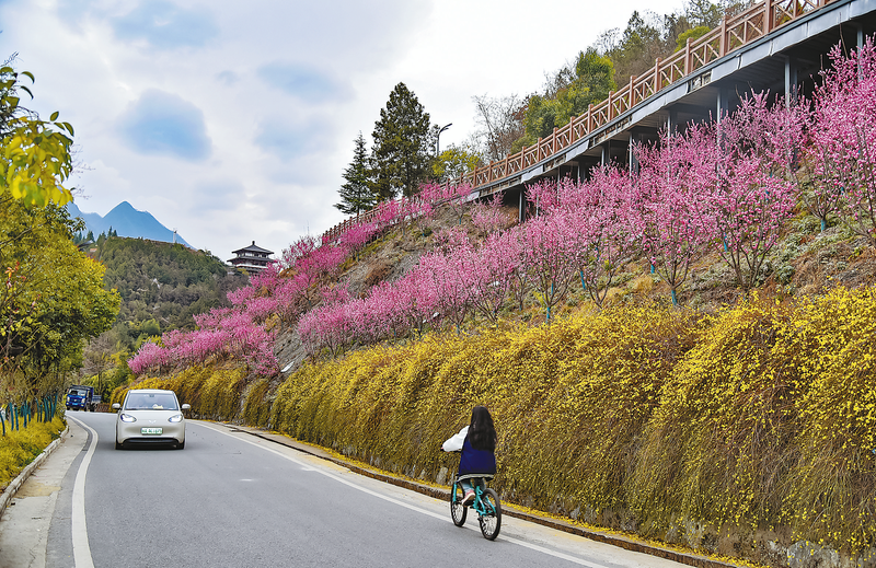 時下,正是賞春好時節,鎮安縣繡屏公園的梅花和迎春花競相綻放,鋪滿大地,宛如一幅絢麗的油畫。游客漫步其中,感受著春天的氣息與自然的饋贈,仿佛置身于夢幻的花之仙境。 (本報記者 馬澤平 攝)