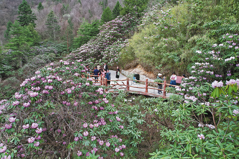近日,鎮(zhèn)安縣木王國家森林公園的杜鵑花相繼盛開,吸引不少游客前來踏青賞花。據(jù)了解,木王國家森林公園擁有西北連片面積最大的杜鵑林帶,分布面積千余畝,品種達12種之多,素有“千山杜鵑”之美譽,花期從3月中旬開始,一直持續(xù)到4月中下旬。 (本報記者 李小龍 攝)