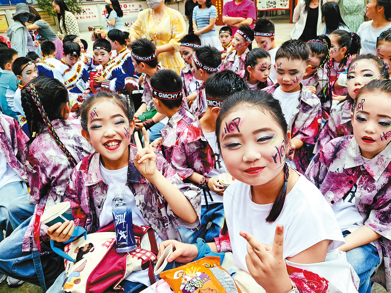 五月二十六日,在鎮安縣第三小學舉行的“迎六一校園文化節”上,小學生慶祝自己節日的到來。鎮安縣第三小學為迎接即將到來的“六一”國際兒童節,隆重舉行了第五屆校園文化藝術節活動,全校師生歡聚一堂,獻上了一場充滿童心與創意的校園文化大餐。
