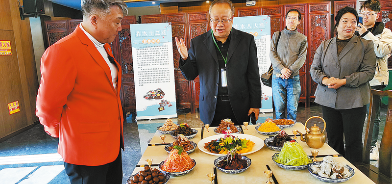 2020年4月20日,周友斌靈感火花閃現(xiàn),“十三花木耳宴”構(gòu)想橫空出世。“柞水本就是木耳的優(yōu)生區(qū),將我們當(dāng)?shù)靥禺a(chǎn)與文化融合是我一直思考的事情。”經(jīng)過兩年的精心籌備,2022年,“柞水八大件木耳宴”“柞水十三花木耳宴”驚艷亮相柞水席面,革新傳統(tǒng)宴席版圖。“木耳刺身”,一經(jīng)亮相,食客無不驚嘆,現(xiàn)在已成為重要宴席活動中不可或缺的大菜,“三耳湯”營養(yǎng)豐富,食客大快朵頤;涼拌木耳清爽開胃;木耳燉煮成湯,濃郁醇厚,暖人心扉;炒制木耳香氣四溢,勾人食欲,還有木耳小吃等,讓人食之難忘。這些創(chuàng)意佳肴不僅豐富味蕾體驗,更撬動產(chǎn)業(yè)升級,拉長木耳產(chǎn)業(yè)鏈,為百姓撐開增收“致富傘”,助力柞水當(dāng)?shù)鼐频晏嵘偁幜Γ瑢崿F(xiàn)文化與經(jīng)濟(jì)雙贏共榮,彰顯非遺活態(tài)傳承生命力。