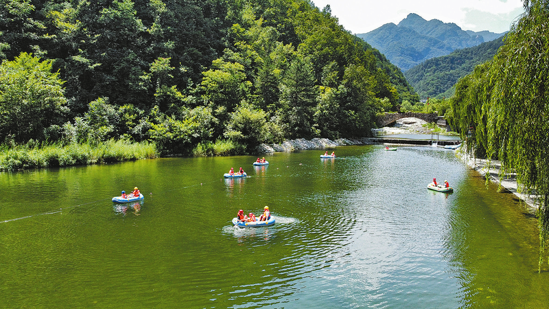 8月13日,柞水縣營盤鎮(zhèn)朱家灣村的佬林峽谷漂流現(xiàn)場,眾多游客乘筏逐浪。入夏以來,牛背梁旅游度假區(qū)憑借秦嶺山水清涼資源,吸引各地游客慕名而來,在山水間解鎖避暑新體驗(yàn)。 (本報(bào)記者 黨率航 攝)