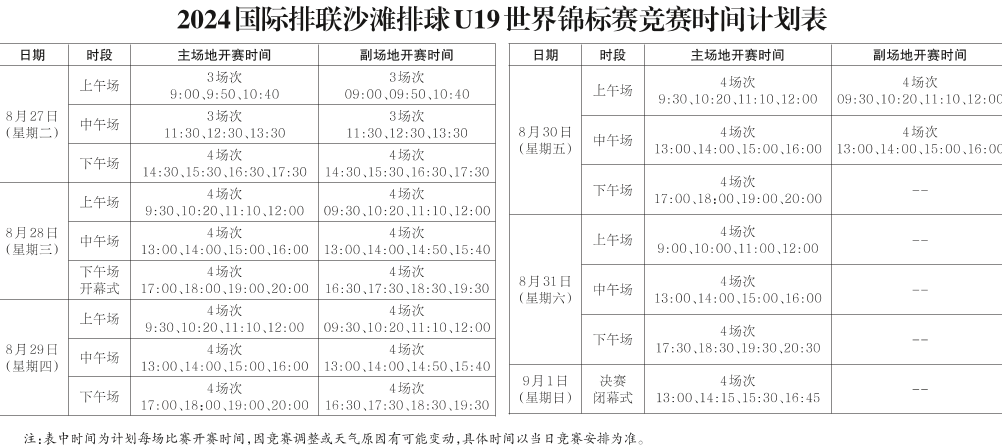 2.開幕式由陜西廣播電視臺體育頻道、閉幕式由中央電視臺體育頻道直播。6個比賽日主場地、副場地比賽通過中國排協網站、陜西廣播電視臺融媒體矩陣、商洛市各媒體網站等平臺全程直播。